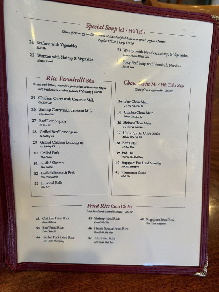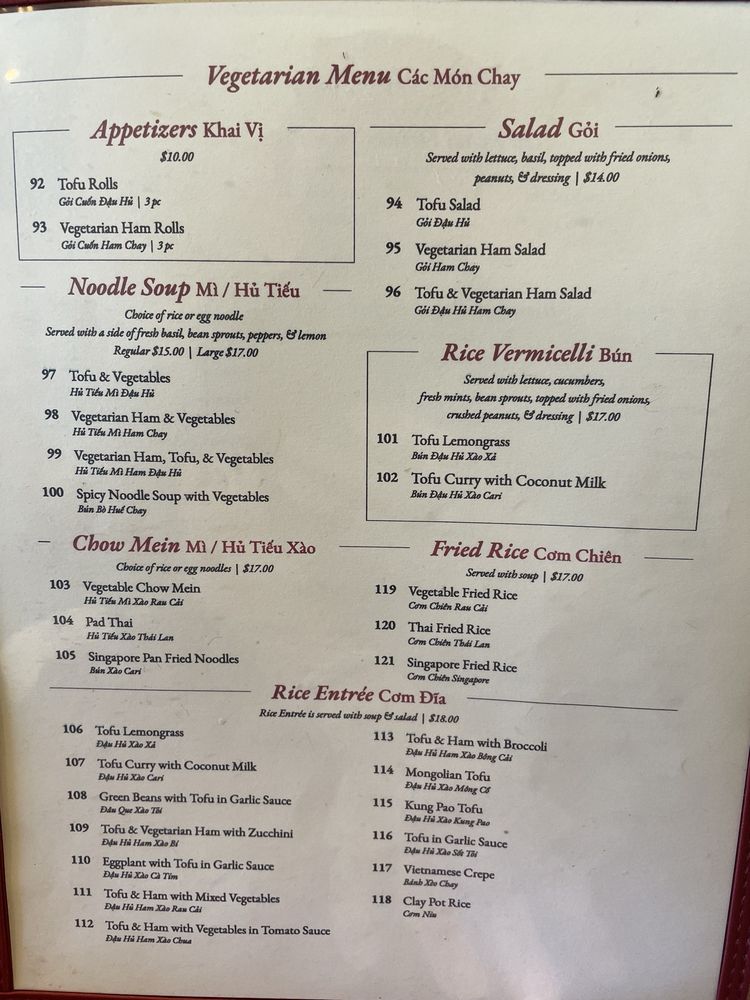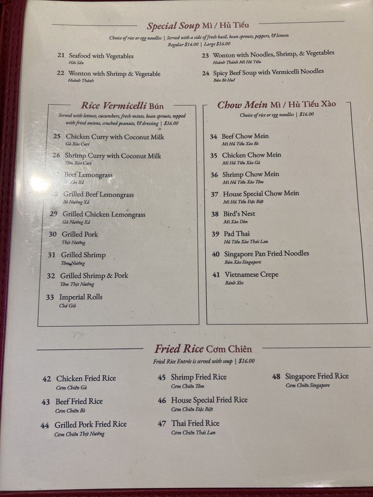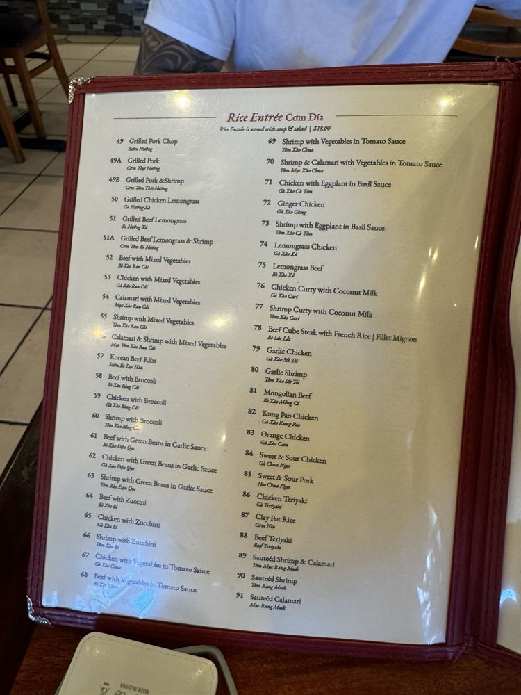 Saigon Cafe in Livermore, CA, is a Vietnamese restaurant that offers a wide range of dishes with vegan and vegetarian options. The menu includes classic Vietnamese dishes like Pho, Lemongrass Chicken, and Curry Chicken, all praised for their generous portions and delicious taste. Customers rave about the fresh and flavorful broth, especially noting the standout peanut sauce for the spring rolls. The restaurant's Clear soup and yellow ginger dressing accompanying the rice dishes have also received high praise for their unique and delicious flavors. The relaxing environment, kind staff, and quick service make dining at Saigon Cafe a delightful experience. Overall, Saigon Cafe is a must-visit for those in the Bay Area looking for authentic and satisfying Vietnamese cuisine.